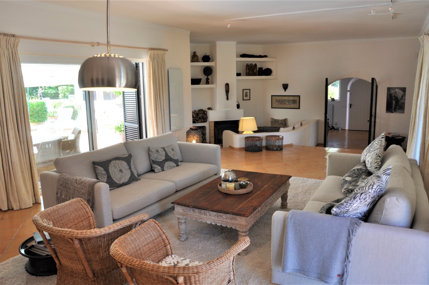 Die Villa bietet seinen Gästen einen luxuriösen, offenen Wohnbereich mit separater Kaminecke.