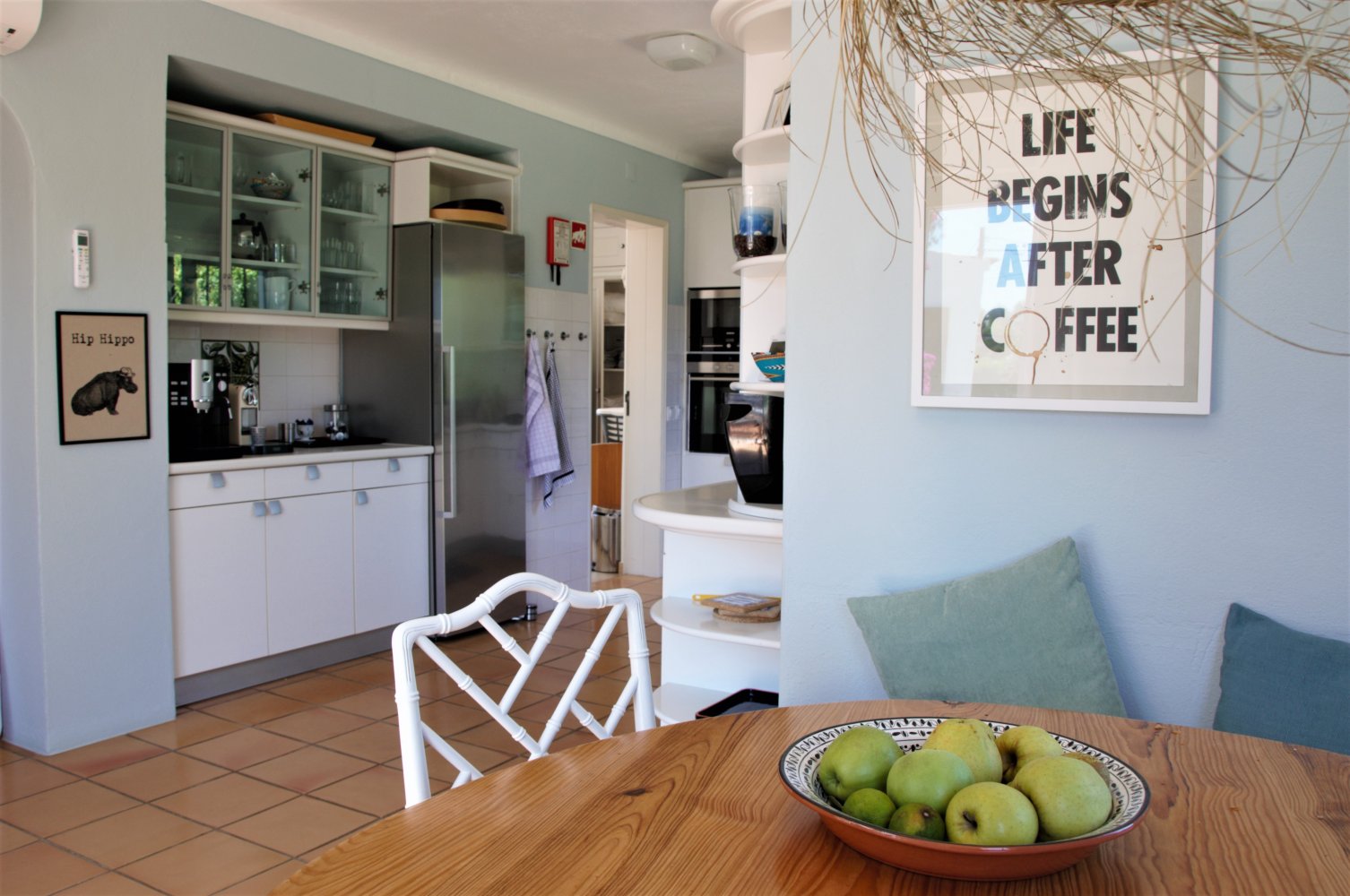 In der sehr gut ausgestatteten Küche (unter anderem mit Jura- Kaffeemaschine),schlägt das Herz eines jeden Hobbykoches höher und man kann entweder direkt in der kleinen, runden Essecke oder im angrenzenden Esszimmer, die dort zubereiteten Köstlichkeiten der Algarve genießen!