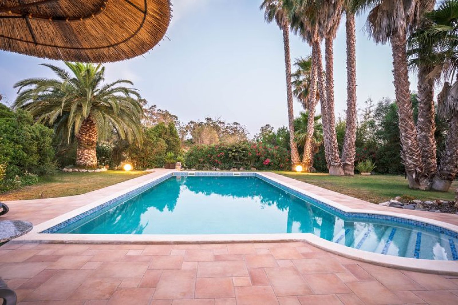 Ein großer Pool (11m x 5m) sowie ein schön gestalteter und großzügiger Liegebereich mit schattenspendenden Palmen steht den Gästen zur Verfügung.