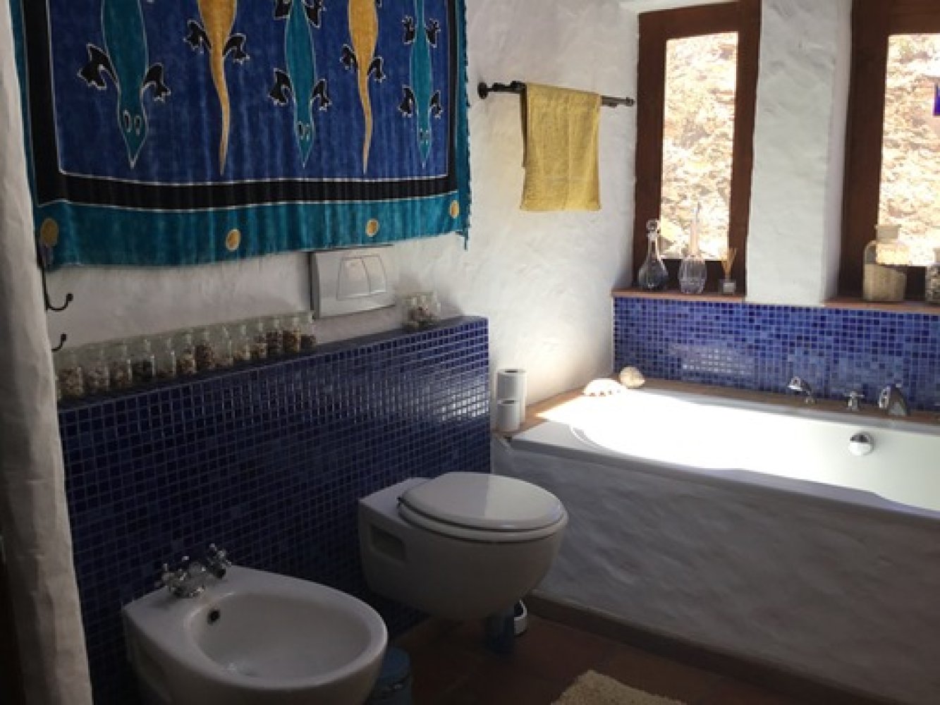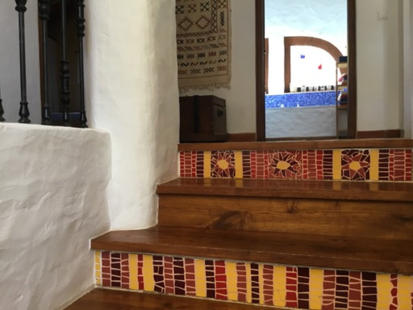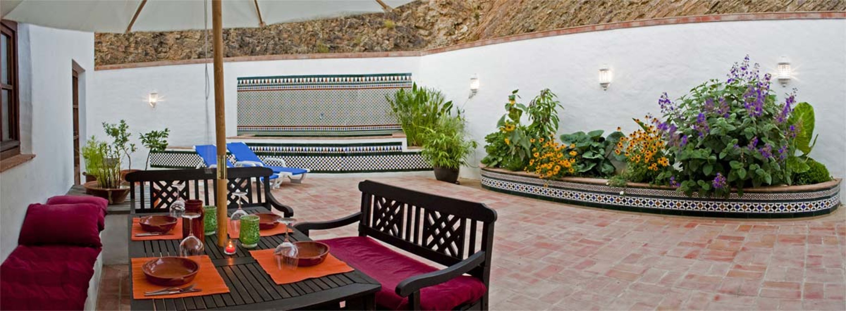 Im Erdgeschoß befindet sich ein geräumiges Wohn-Esszimmer, eine sehr gut ausgestattete Vollholzküche mit Zugang zu einem Innenhof im maurischen Stil und ein Schlafzimmer mit Bad en suite.