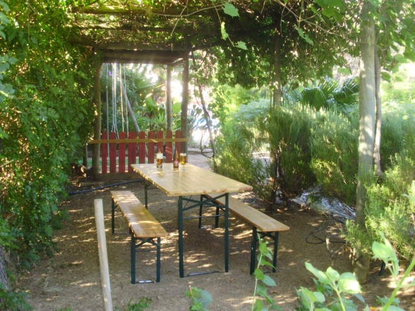 Hinter der Terrasse des Haupthauses, aber durch Büsche und Pflanzen uneinsehbar, befindet sich ein kleiner Kinderspielplatz und schöner Poolbereich, der ebenfalls allen Gästen des Anwesens zur Verfügung steht