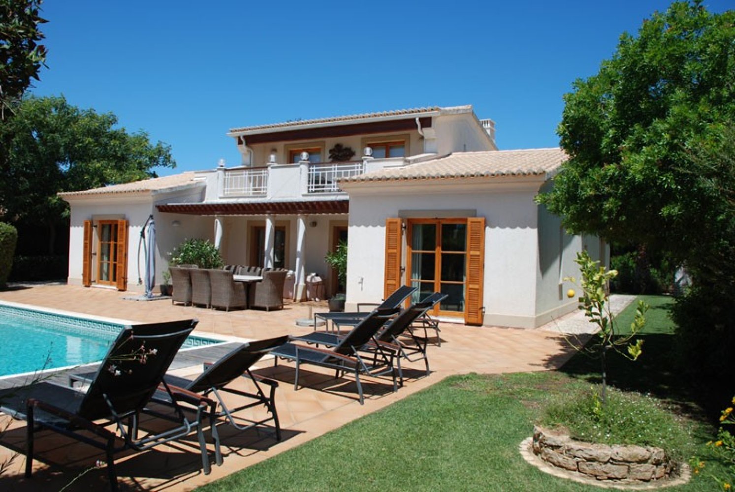 Die stilvolle 4-Schlafzimmer-Villa befindet sich in einem großen, mediterranen Garten mit beheizbarem Pool und einer großen Terrasse.