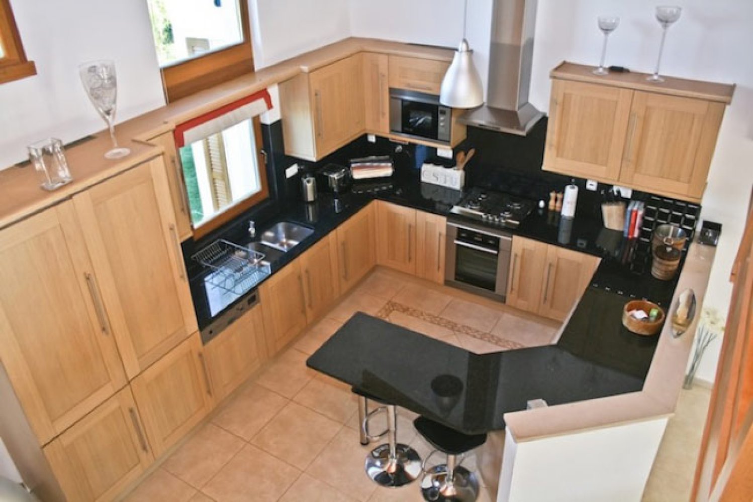 Voll ausgestattete Küche mit Granit-Arbeitsplatten,elektrischer Backofen, Gasherd, Kühlschrank, Gefrierschrank, Mikrowelle, Spülmaschine, Waschmaschine, Kaffeemaschine, Toaster, Geschirr