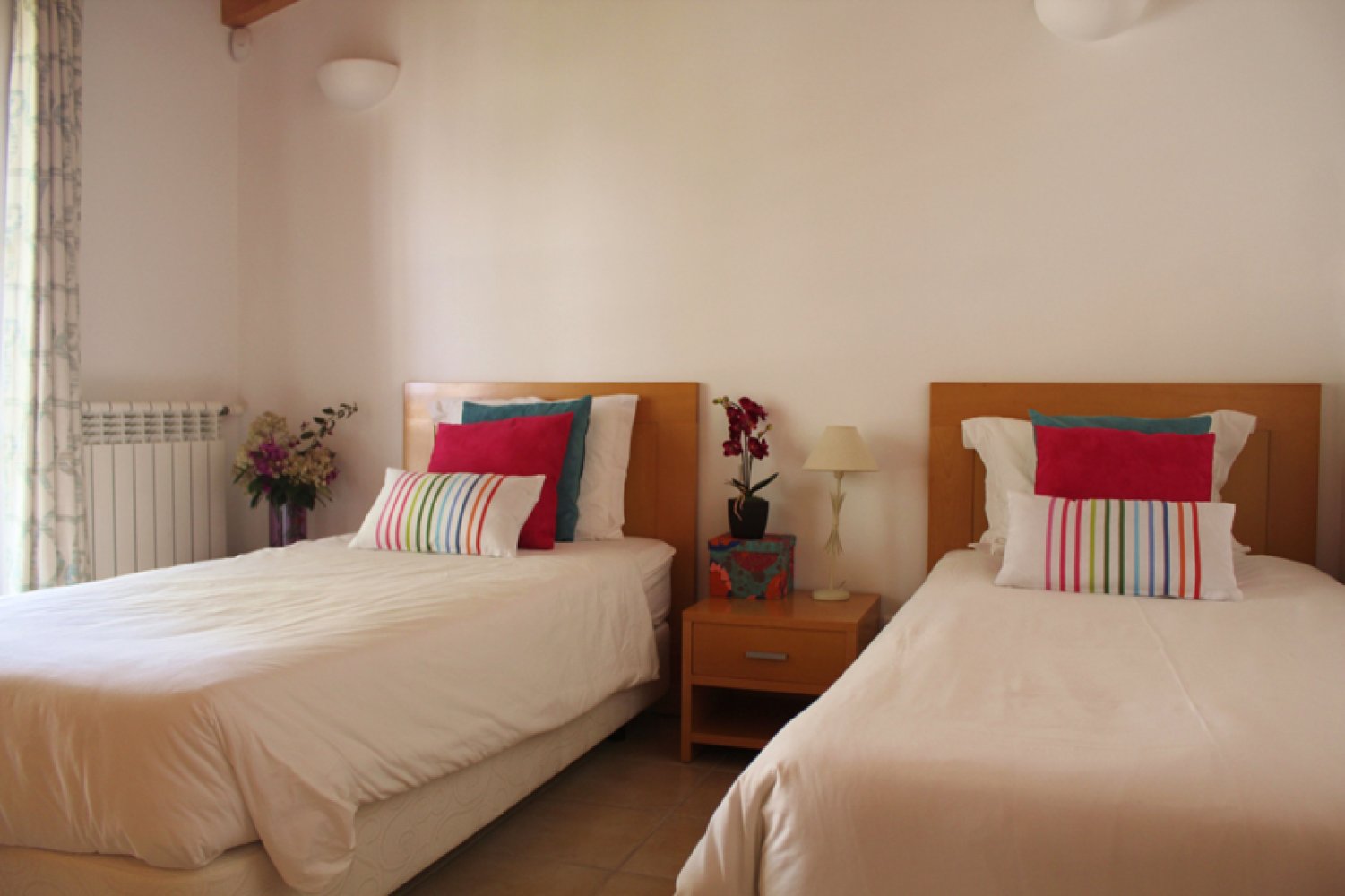 Diese luftige Doppelhaus Villa liegt in einer wunderschönen mediterranen Gartenanlage mit eigenem beheiztem Pool. Das Haus befindet sich in der Villensiedlung Alma Verde bei Burgau. Die noch relativ unentdeckte Costa Vicentina mit seiner zerklüfteten Küste und den Stränden sowie großem Naturschutzgebiet liegt in direkter Nähe. Auch der beliebte Touristenort Lagos mit Yachthafen, Märkten, der Altstadt mit kleinen Gassen zum Shoppen befindet sich nur ca. 15 Autominuten entfernt.