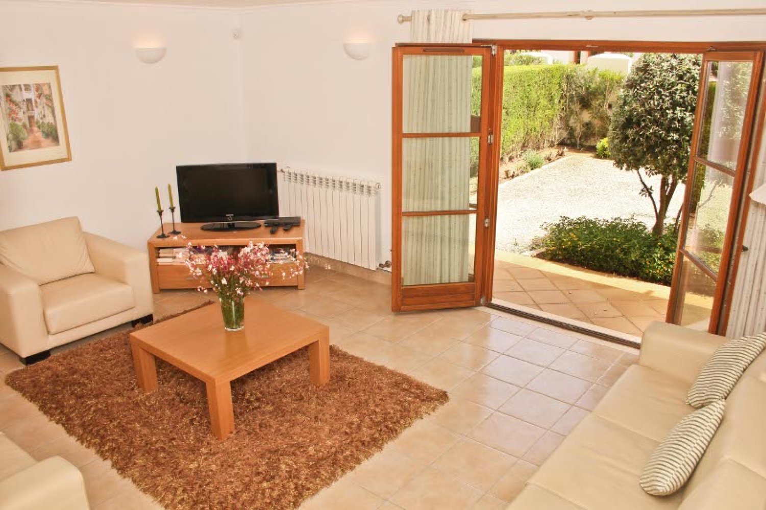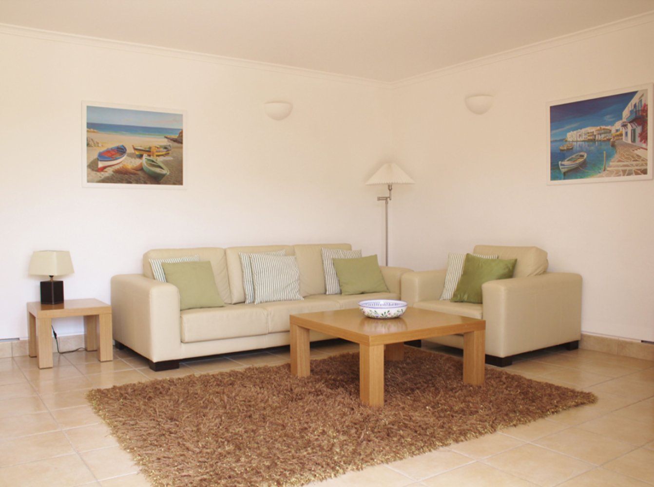 Terrassentüren aus dem Flur und Wohnzimmer öffnen sich auf die Terrasse, mit Sitz-und Esszimmer, Sonnenliegen, Grill, beheizbarer Pool. Das Wohnzimmer ist mit einem Sofa, Flat screen TV, , DVD, Musik-System ausgestattet