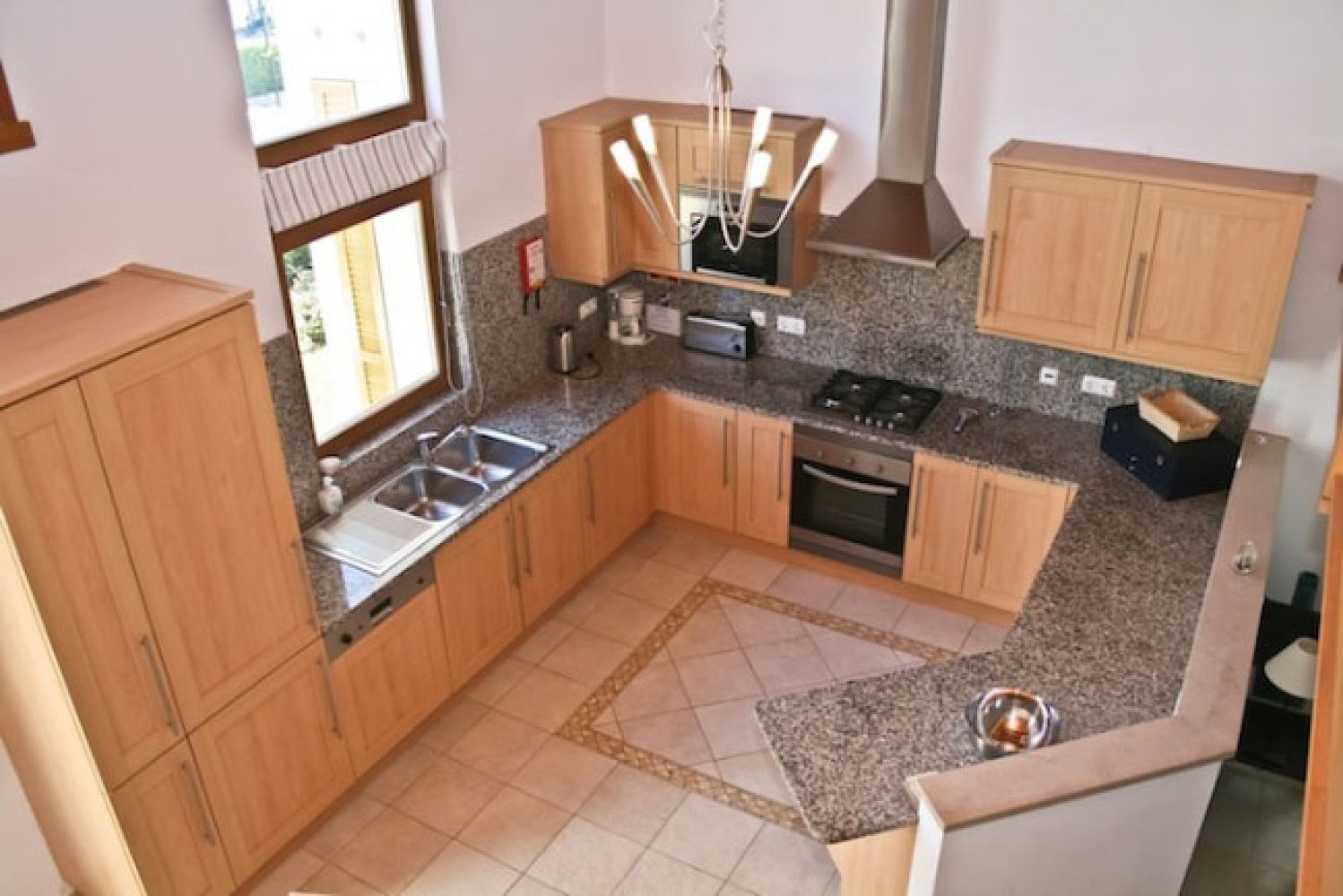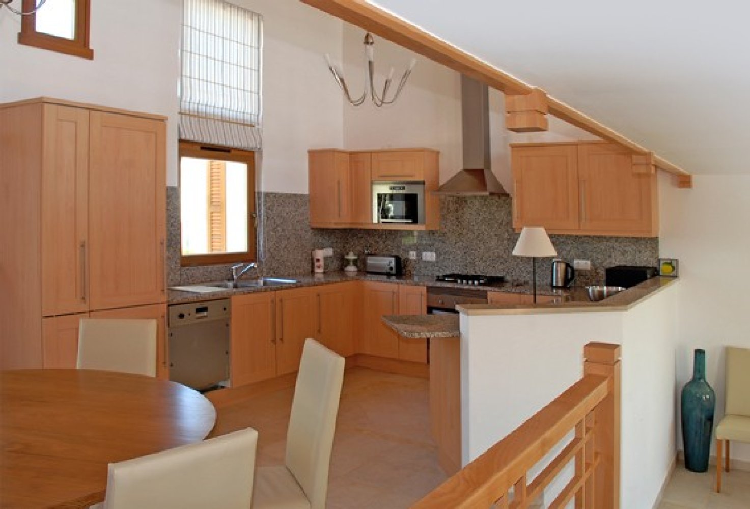 Badezimmer: Ensuite zu Schlafzimmer1 mit Badewanne, Dusche, WC und Waschbecken Ensuite zu Schlafzimmer 2 mit Dusche, WC, und Waschbecken Separates Badezimmer mit Dusche, WC, Bidet und Waschbecken für Schlafzimmer 3 & 4 Küche: Voll ausgestattete Küche mit Granit-Arbeitsplatten, Backofen, Herd, Kühlschrank, Gefrierschrank, Mikrowelle, Spülmaschine, Waschmaschine, Trockner, Kaffeemaschine, Toaster, Geschirr