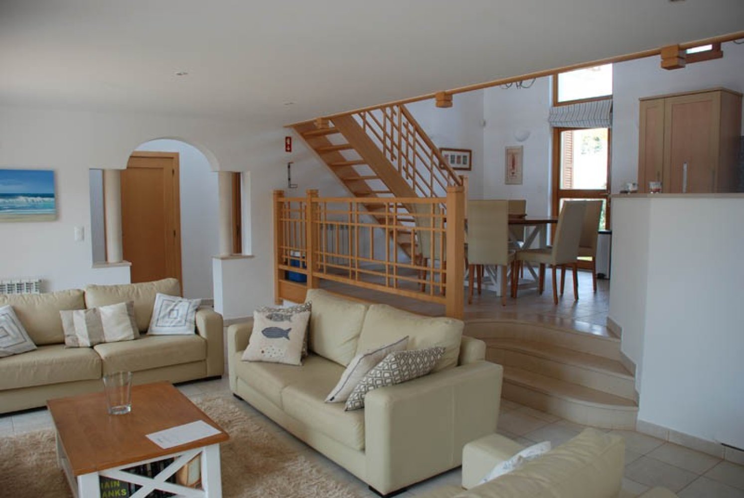 Wohnbereich: großer, offener Wohnbereich wie folgt unterteilt: Wohnzimmer mit großen Sofas, TV mit Flachbildschirm, Kabelkanäle, DVD, Musik-System. Küche und Essbereich mit großem Tisch und Stühlen