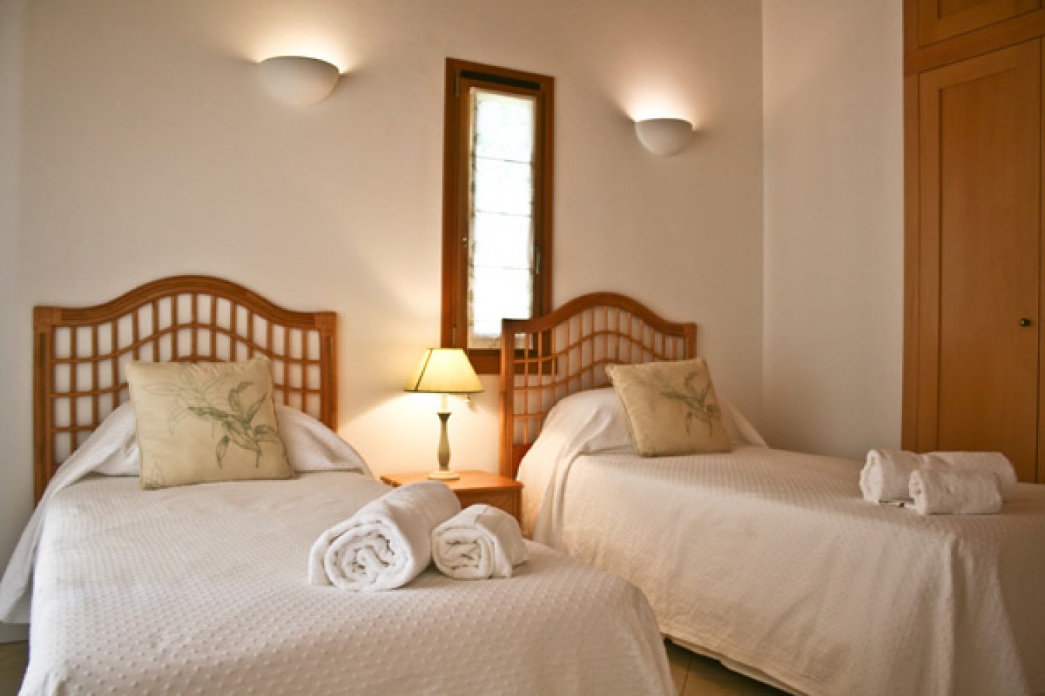 Die geräumige und freistehende Villa liegt in einem schönen mediterranen Garten, mit einem großen beheizbarem Außenpool. Die Villa verfügt über eine beeindruckende zweigeschossige Eingangshalle mit Treppe, die zu einer privaten Dachterrasse führt. Der offene Wohnbereich ist in hohem Standard und in modernem Design eingerichtet. Über große Terrassentüren gelangt man an die Pool-Terrasse und den Garten, wo man Essen im Freien genießen kann und dabei einen Panoramablick auf die umliegende Landschaft hat. Dies ist ein idyllischer Ort für einen herrlichen Urlaub.