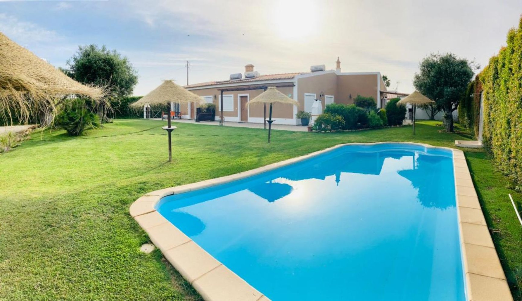 Zum Anwesen gehört auch ein eigener Pool, den sich die  Wohneinheiten teilen.