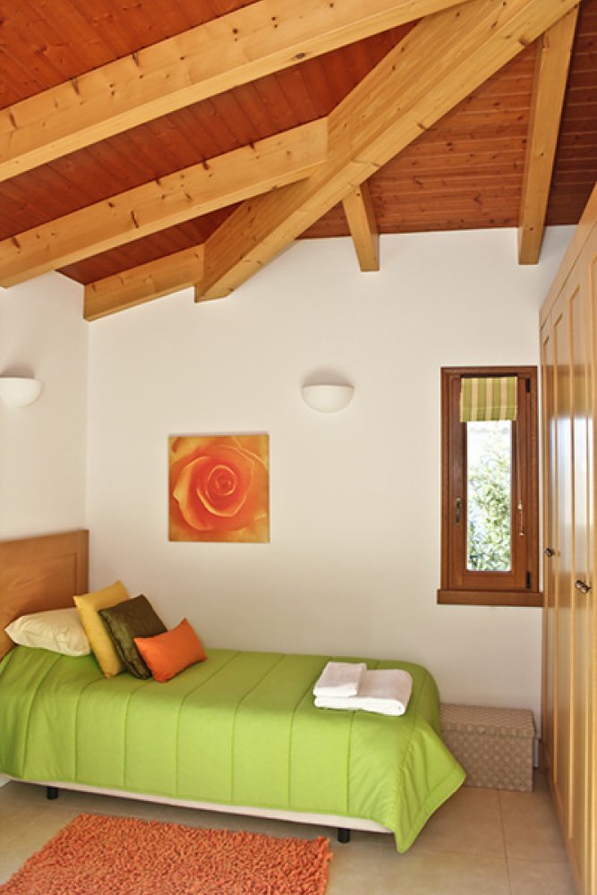 Schlafzimmer 3 auf der oberen Ebene mit 2 Einzelbetten, angrenzendem Duschbad und privatem Balkon