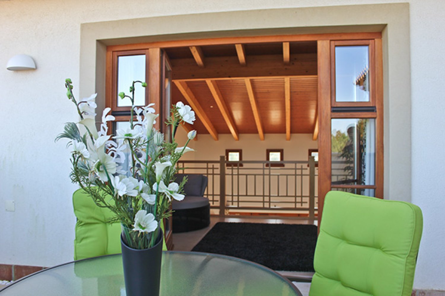 Die Galerie und eines der Schlafzimmer führen auf eine große Dachterrasse (19 qm) mit Tisch und Stühlen, während das andere Schlafzimmer eine eigene kleine Süddachterrasse hat.