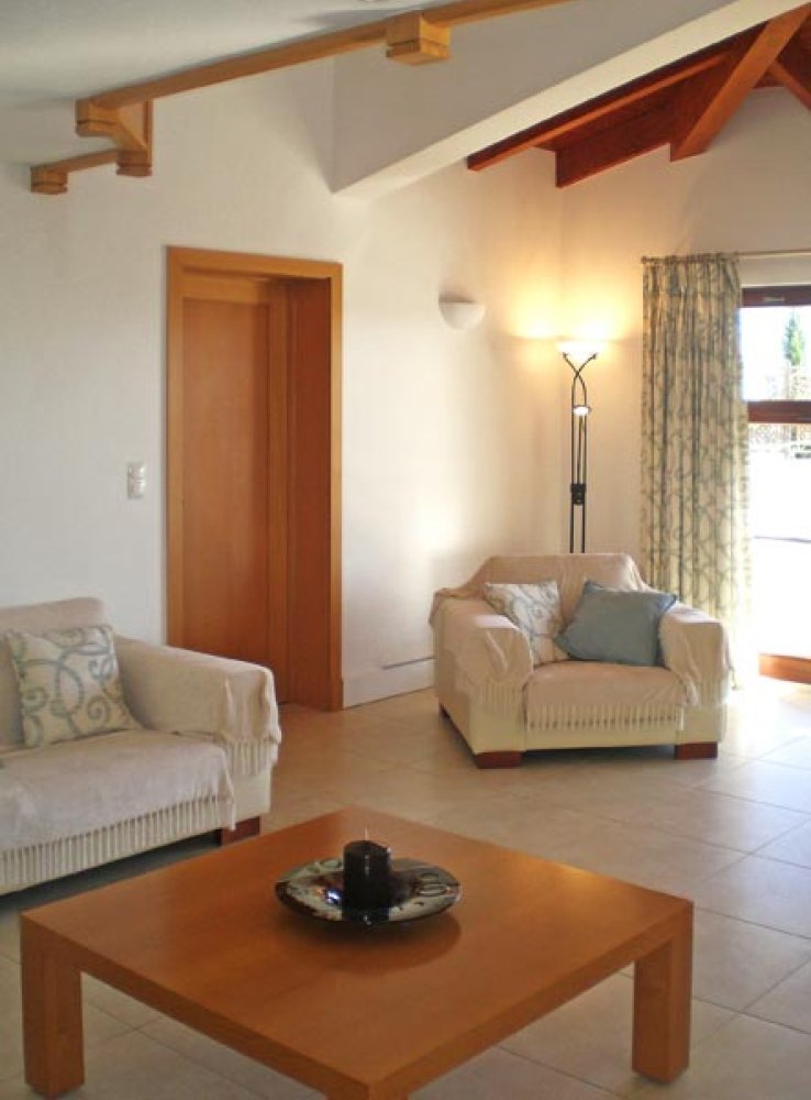 Living Areas: Großer, offener Wohnbereich unterteilt in: Wohnzimmer mit großen Sofas, TV mit Flachbildschirm und Kabelkanälen, DVD, Musikanlage Mezzanine-Ebene mit Zugang zu zwei Dachterrassen Esszimmer mit großem Tisch und Stühlen Außenbereich mit großer Terrasse, Sonnenliegen, Grill, privaten beheizten Pool. Eine Besonderheit dieser Villa ist der herrliche geschützte Innenhof