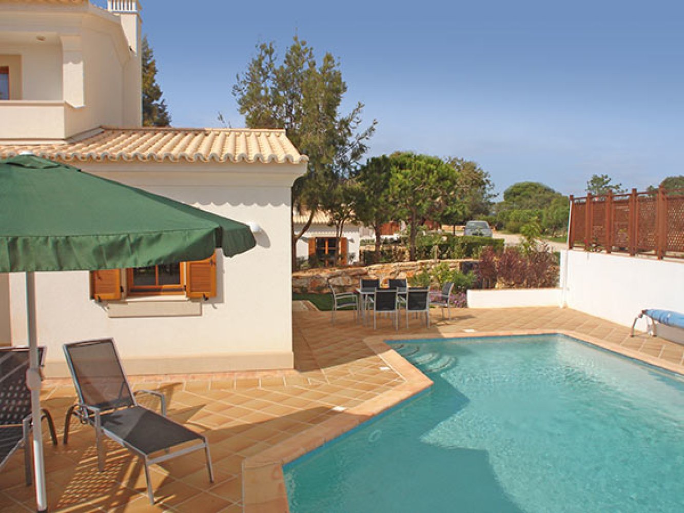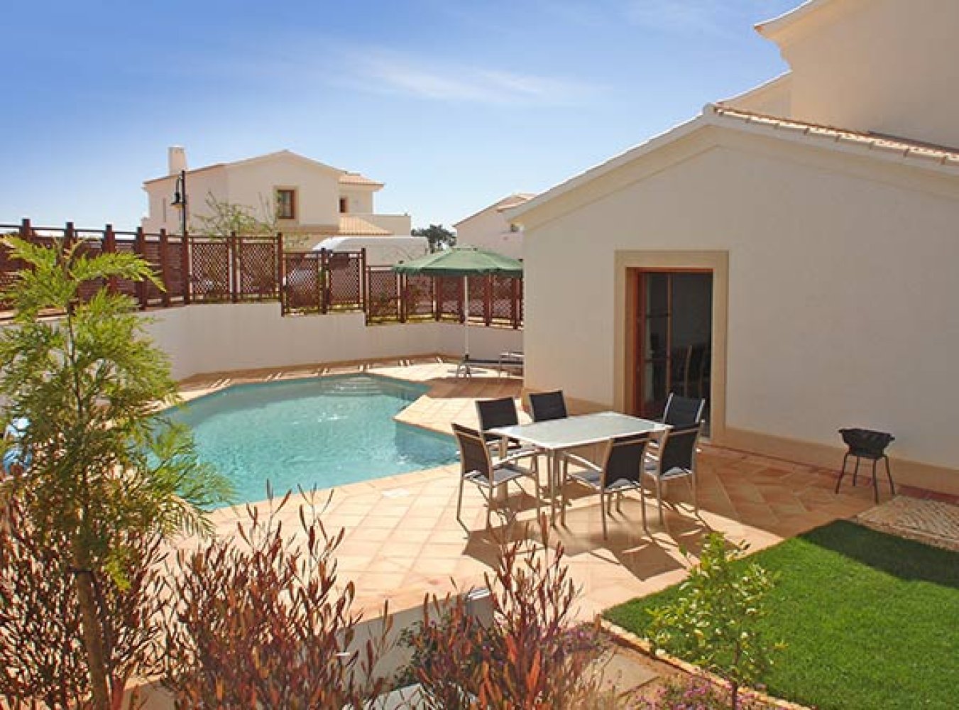 Diese luftige Doppelhaus Villa liegt in einer wunderschönen mediterranen Gartenanlage mit eigenem beheiztem Pool. Das Haus befindet sich in der Villensiedlung Alma Verde bei Burgau. Die noch relativ unentdeckte Costa Vicentina mit seiner zerklüfteten Küste und den Stränden sowie großem Naturschutzgebiet liegt in direkter Nähe. Auch der beliebte Touristenort Lagos mit Yachthafen, Märkten, der Altstadt mit kleinen Gassen zum Shoppen befindet sich nur ca. 15 Autominuten entfernt.