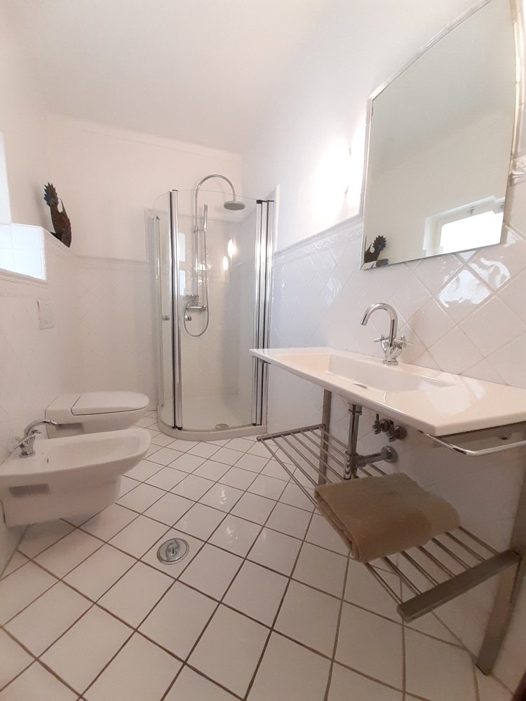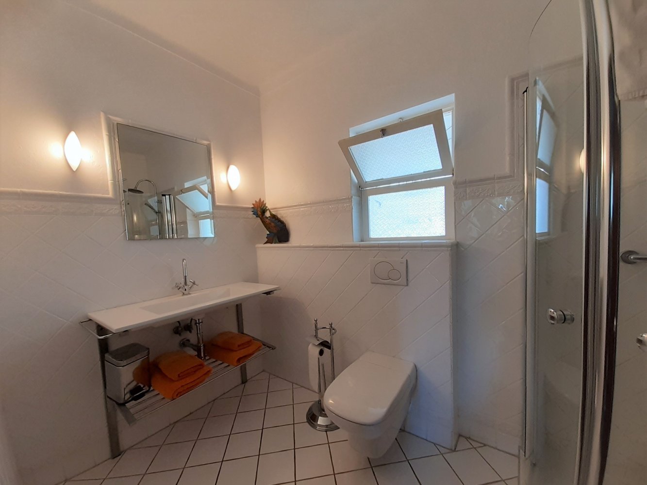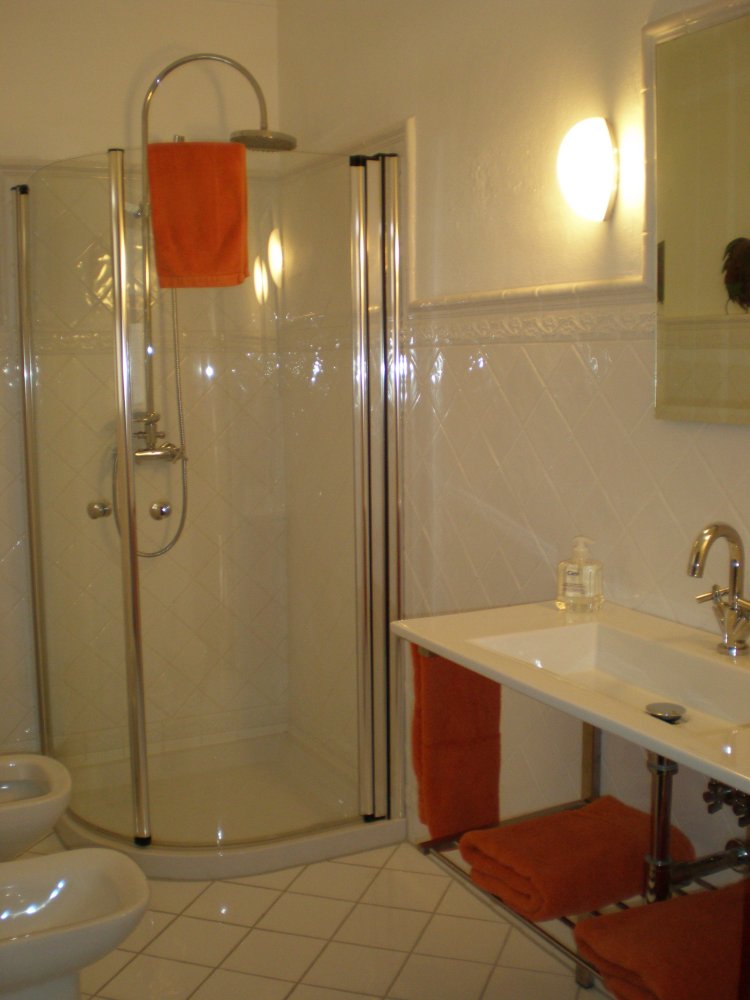 Die Schlafzimmer sind ausgestattet mit großen Doppelbetten und entsprechenden Überlagen in 2 mal 2 Metern Größe, bei Bedarf selbstverständlich auch separat zu stellen. Handtücher und Baumwollbettwäsche sind vorhanden und im Mietpreis inbegriffen. Diese werden regelmäßig gewechselt. Jedes Schlafzimmern besitzt ein eigenes Bad mit Waschbecken, Bidet und Wc - zwei Bäder mit transparenter Duschkabine, eines mit einer großzügigen Eckbadewanne. Die Schlafzimmer verfügen über Aircondition-Standgeräte.
