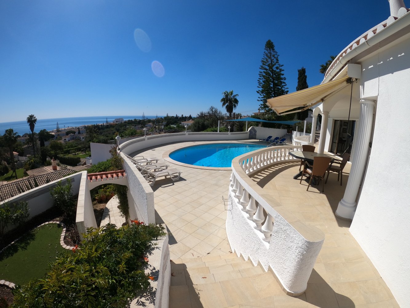 Durch die Lage und Ausrichtung der Villa kann man bis auf die Bucht von Luz und ins Hinterland sehen. Die großzügige Poolterrasse mit mehreren Sitzmöglichkeiten bietet sich zum Träumen, Lesen und Entspannen an. Den kleinen Sandstrand von Luz mit Strandpromenade, Restaurants und kleineren Geschäften können die Gäste der Casa dela Cresta zu Fuß in wenigen Minuten erreichen. Weitere zahlreiche Sandstrände, Küstenabschnitte und den historisch wertvollen Ort Lagos mit Yachthafen, verwinkelter Altsstadt, schönen Restaurants und Markthalle, erreichen Sie schnell mit dem Auto.