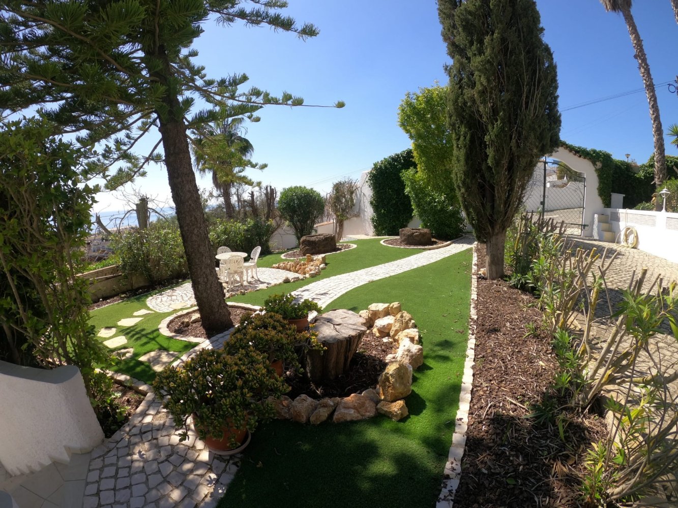 Die Gäste empfängt ein schönes rundes Eingangstor sowie eine großzügige Einfahrt mit sicherer Parkmöglichkeit für Ihr Auto. Das gepflegte Grundstück ist komplett eingezäunt.