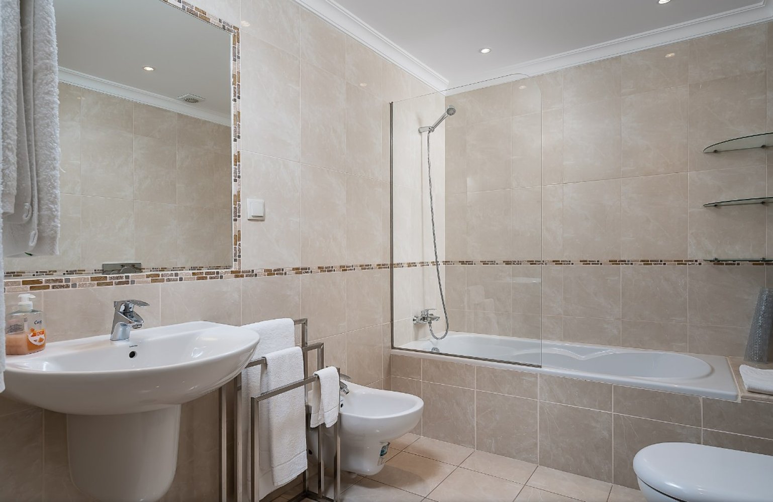Dieses luxuriöse und geschmackvoll eingerichtete zweistöckige Penthouse verfügt über 3 Schlafzimmer ( mit Klimaanlage), 3 Badezimmer ( eines davon en suite), ein Wohn-Esszimmer, eine Küche , eine Veranda mit Sitzmöglichkeiten, sowie eine wundervolle Dachterrasse mit Meerblick, Grill und als besonderes Highlight, einem Jacuzzi ( gegen Aufpreis).
