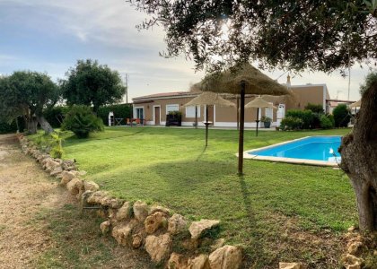 Die Casa verfügt über vier großzügige, helle Schlafzimmer und drei Bäder . Von allen Schlafzimmern gelangen Sie über große Terrassentüren in den Garten. Hier finden Sie neben vielen mediterranen Pflanzen den großen Pool (11mx6m) und einen Grillbereich. Es sind ausreichend Liegen und Sonnenschirme vorhanden. Die etwas erhöhte Terrasse verfügt außerdem über eine Sonnenmarkise. Über eine Treppe gelangt man von hier auf die Dachterrasse. Hier können Sie herrlich Sonnenuntergänge genießen und den Blick bis zum Meer schweifen lassen.