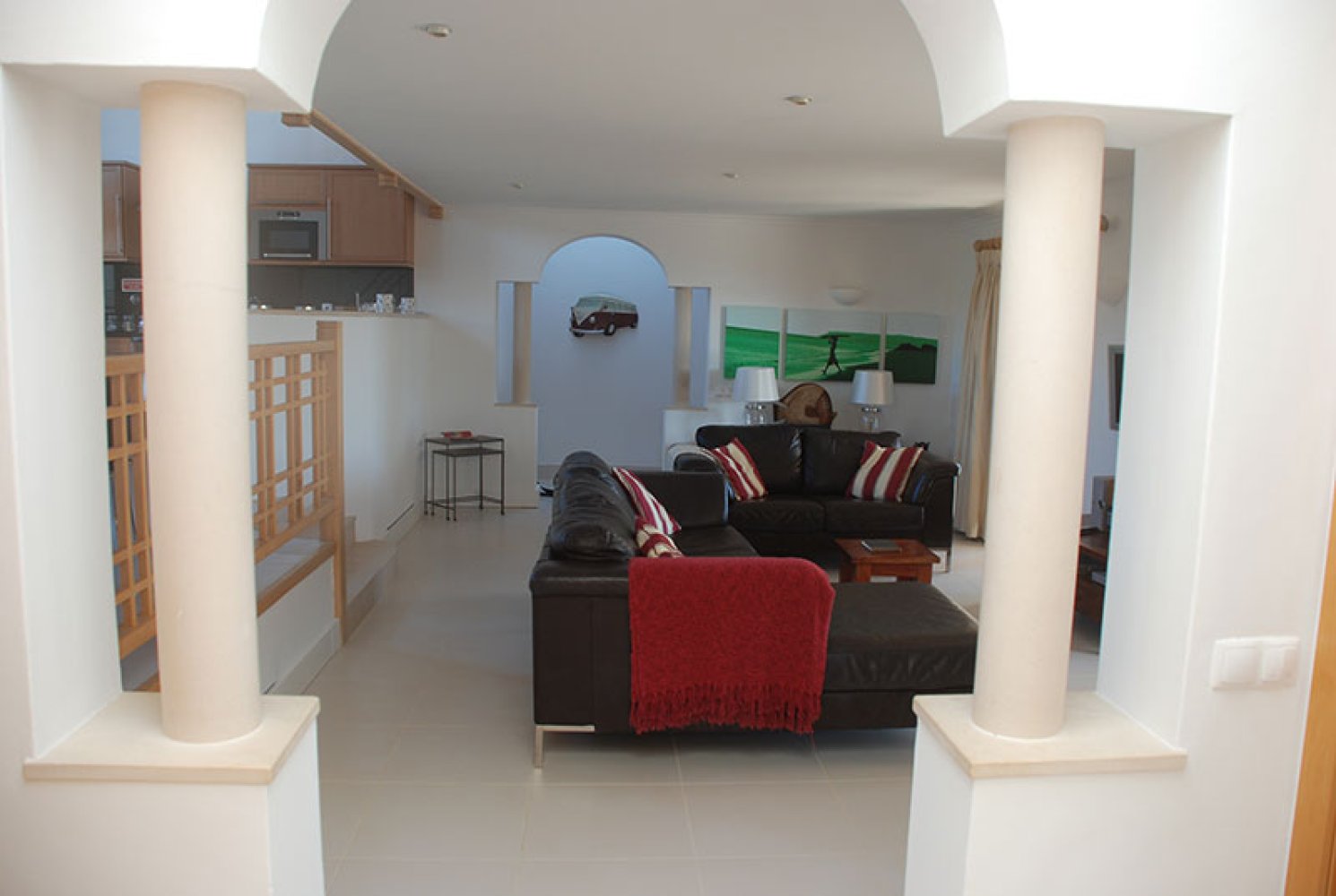 Zu beiden Seiten des Wohnbereichs befinden sich zwei Schlafzimmer.