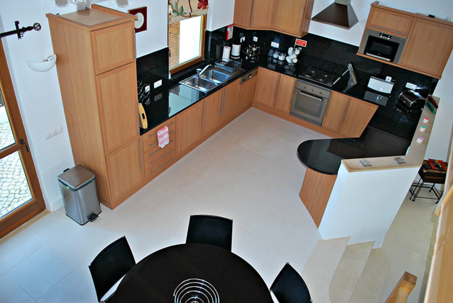 Doppelter Küchen- und Essbereich mit rundem Tisch und 6 Stühlen