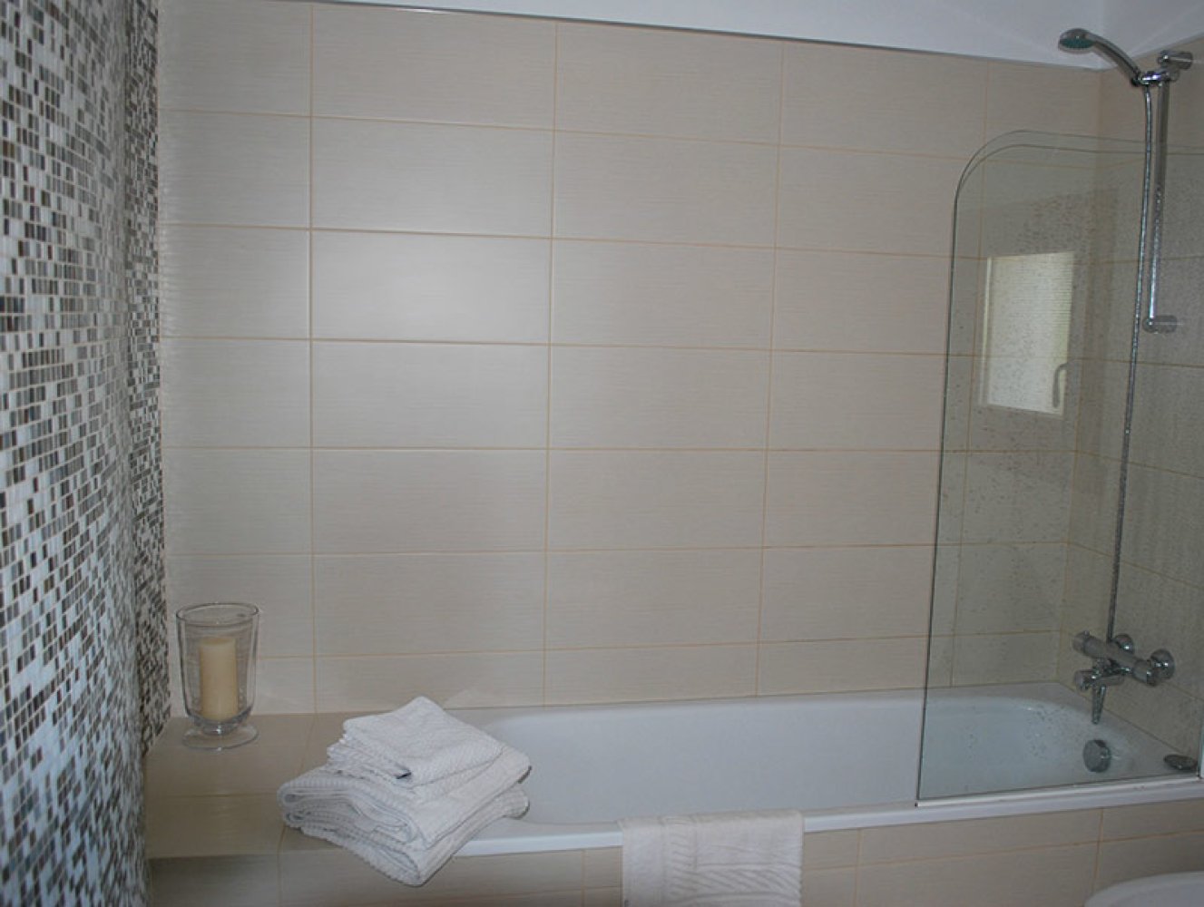 En suite zum Schlafzimmer 1 mit Bad, separater Dusche, WC & Waschbecken