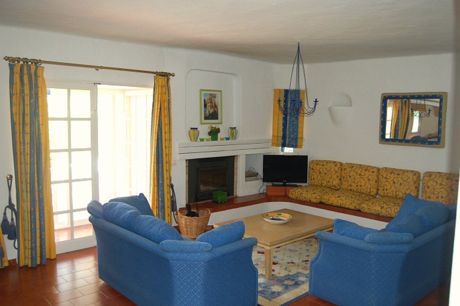 Es gibt ein geräumiges Wohnzimmer mit Terrassentüren die auf die Terrasse führen, zum Garten und dem privaten Pool.