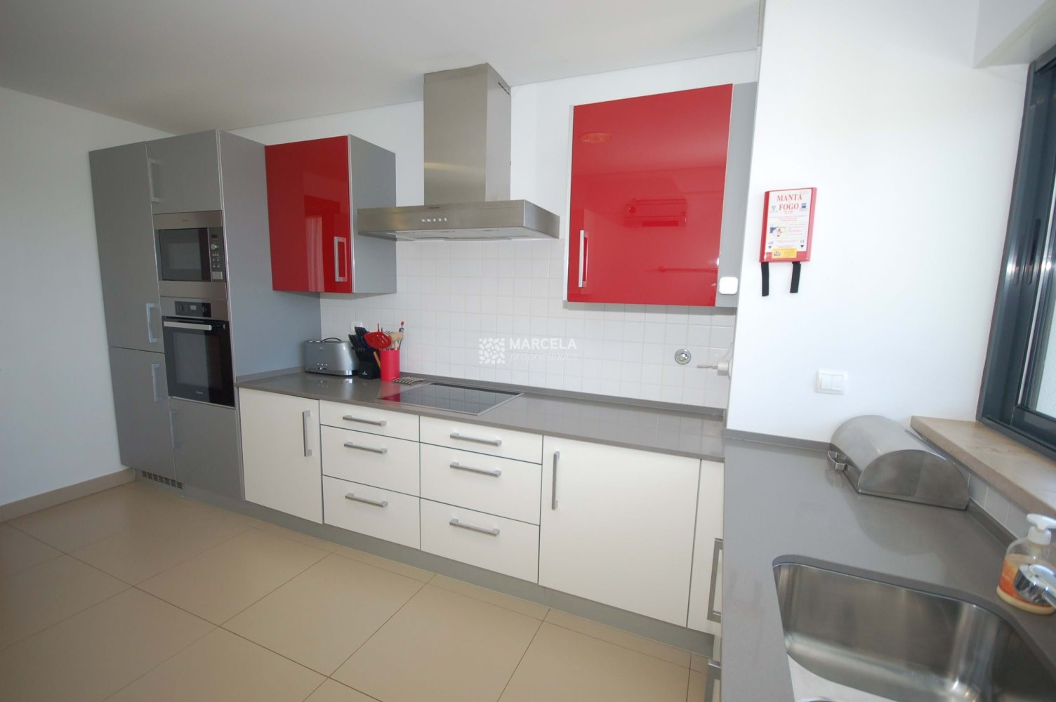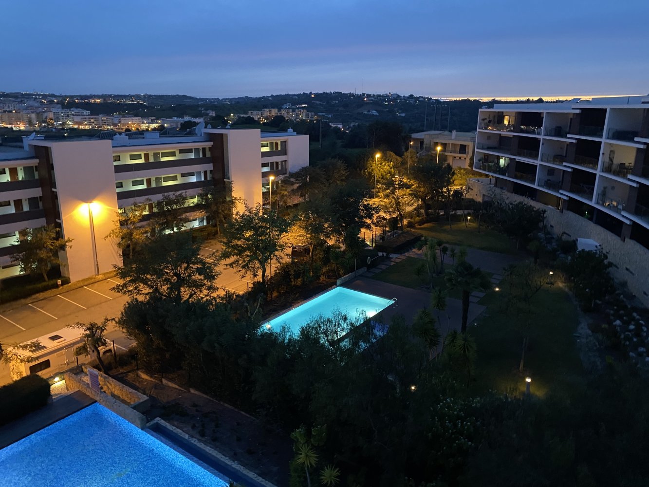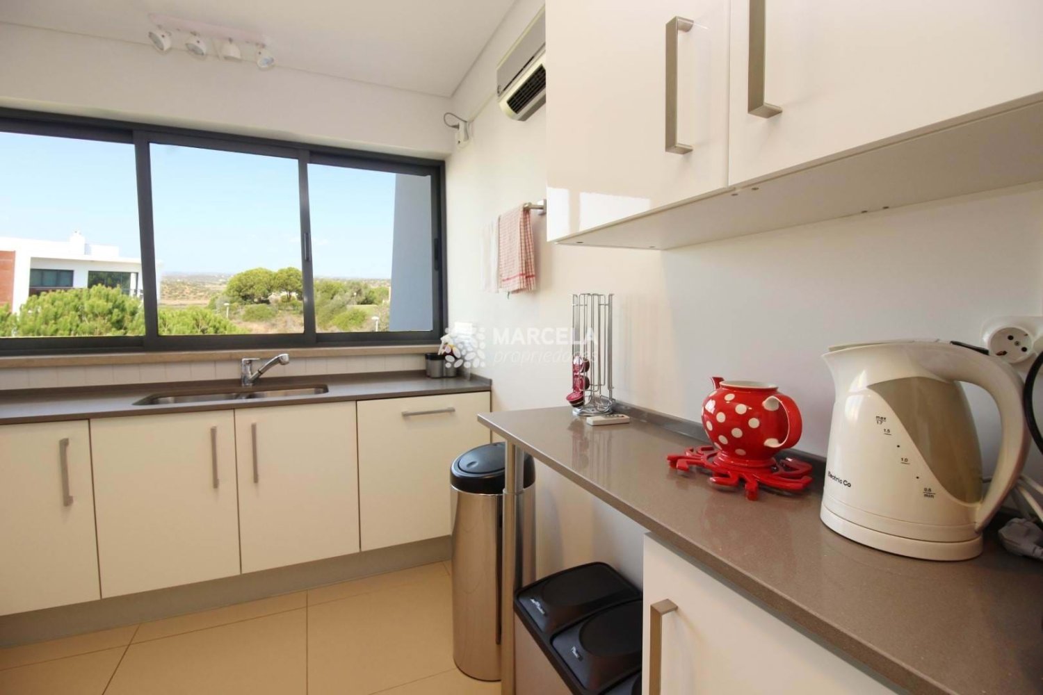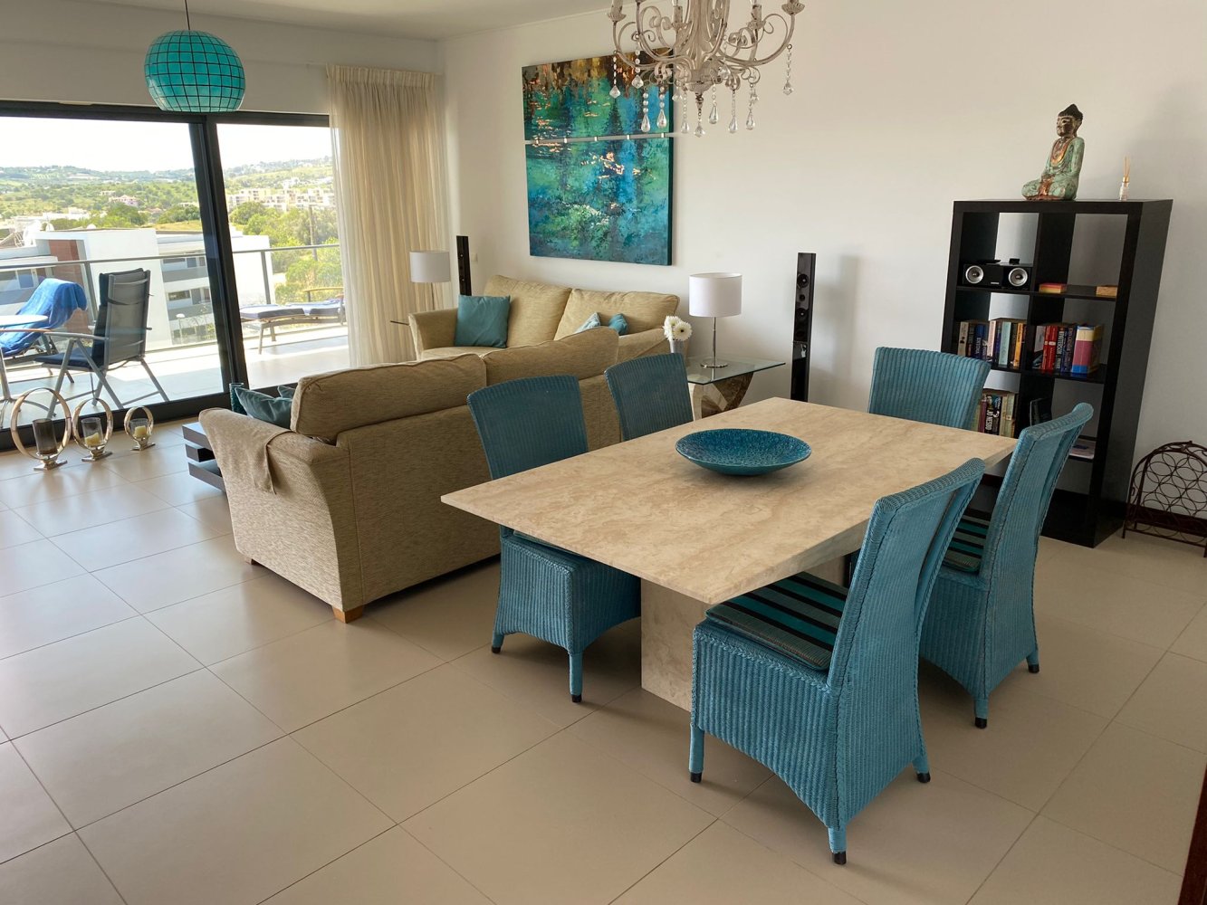 Das modern ausgestattete Apartment verfügt über eine voll ausgestattete Küche mit hochwertigen Küchengeräten ( Induktionsherd, Filter-und Espresso-Kaffeemaschine), 2 Schlafzimmer (ein Zimmer mit Zugang zur Terrasse), 1 Büro mit Schlafcouch ( ebenfalls Zugang zu einem kleinen seitlichen Balkon )und 2 Badezimmer (1 en-suite). Auf der weitläufigen, den ganzen Tag sonnigen Terrasse befindet sich ein großer Tisch, Stühle und Sonnenliegen. Klimaanlage, WLAN, elektrische Handtuchhalter in den Badezimmern, Sonnenkollektoren für die Warmwasserbereitung und elektrische Jalousien runden das Angebot ab. Diese Wohnung hat die Besonderheit, nach Südwesten ausgerichtet zu sein und bietet eine wunderschöne 360º-Aussicht. Zur Wohnung gehören zwei private Parkplätze in der Tiefgarage, mit dem Aufzug gelangen Sie von der Parkebene direkt in die Etage der Wohnung. Der Zugang zum Pool erfolgt über eine Tür in der Garage. Der sehr gut sortierte Supermakrt Pingo Doce ist fußläufig erreichbar, ein kleiner Minimarkt, in dem z.B.Brötchen gekauft werden können, ist unmittelbar an der Anlage.