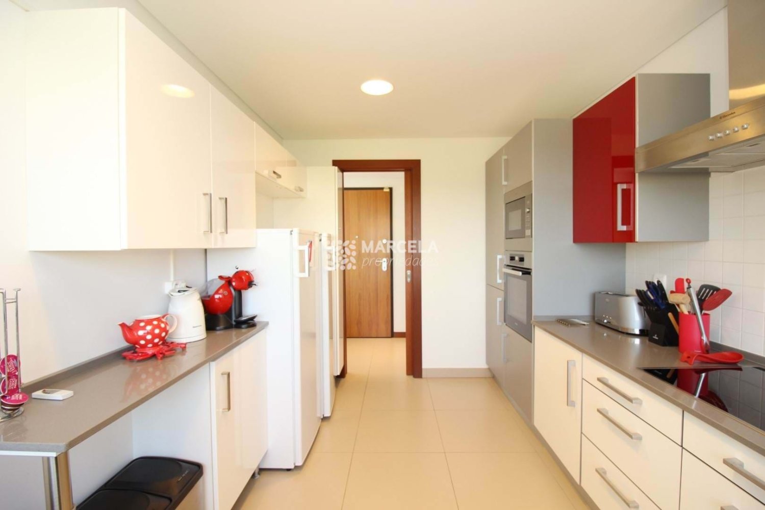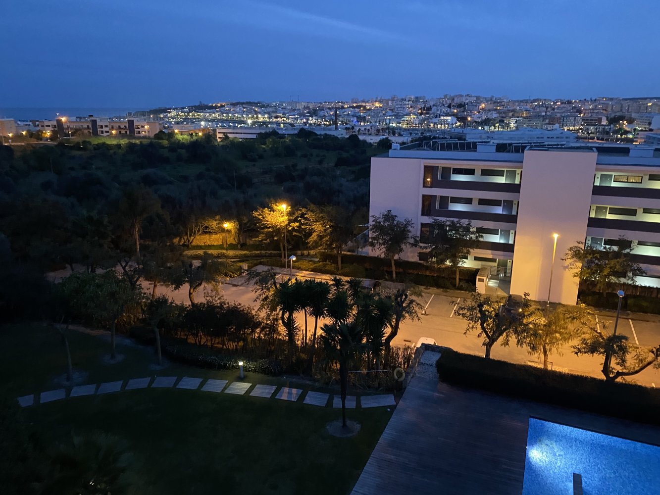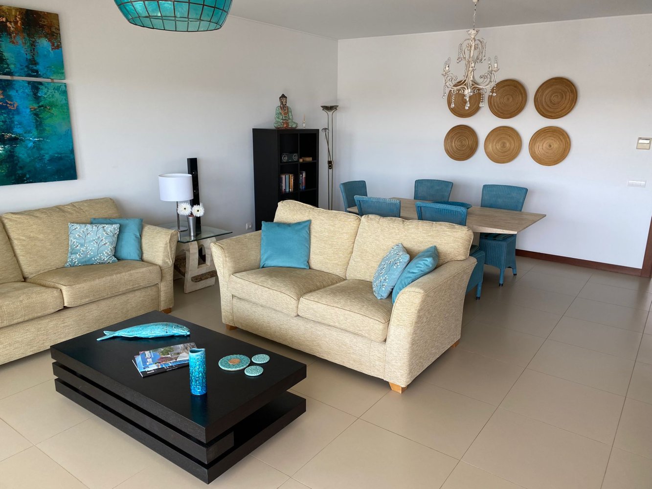 Das modern ausgestattete Apartment verfügt über eine voll ausgestattete Küche mit hochwertigen Küchengeräten ( Induktionsherd, Filter-und Espresso-Kaffeemaschine), 2 Schlafzimmer (ein Zimmer mit Zugang zur Terrasse), 1 Büro mit Schlafcouch ( ebenfalls Zugang zu einem kleinen seitlichen Balkon )und 2 Badezimmer (1 en-suite). Auf der weitläufigen, den ganzen Tag sonnigen Terrasse befindet sich ein großer Tisch, Stühle und Sonnenliegen. Klimaanlage, WLAN, elektrische Handtuchhalter in den Badezimmern, Sonnenkollektoren für die Warmwasserbereitung und elektrische Jalousien runden das Angebot ab. Diese Wohnung hat die Besonderheit, nach Südwesten ausgerichtet zu sein und bietet eine wunderschöne 360º-Aussicht. Zur Wohnung gehören zwei private Parkplätze in der Tiefgarage, mit dem Aufzug gelangen Sie von der Parkebene direkt in die Etage der Wohnung. Der Zugang zum Pool erfolgt über eine Tür in der Garage. Der sehr gut sortierte Supermakrt Pingo Doce ist fußläufig erreichbar, ein kleiner Minimarkt, in dem z.B.Brötchen gekauft werden können, ist unmittelbar an der Anlage.