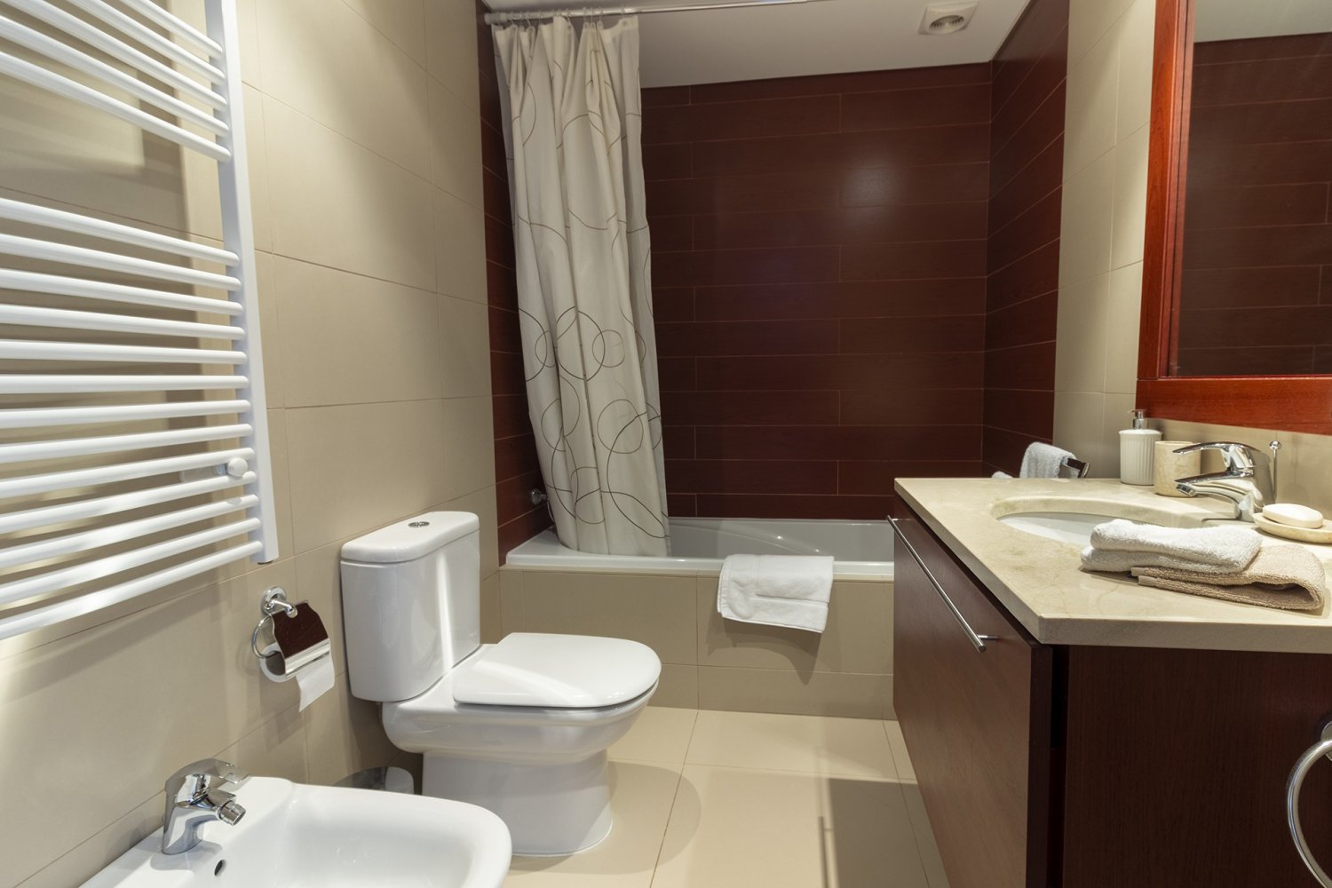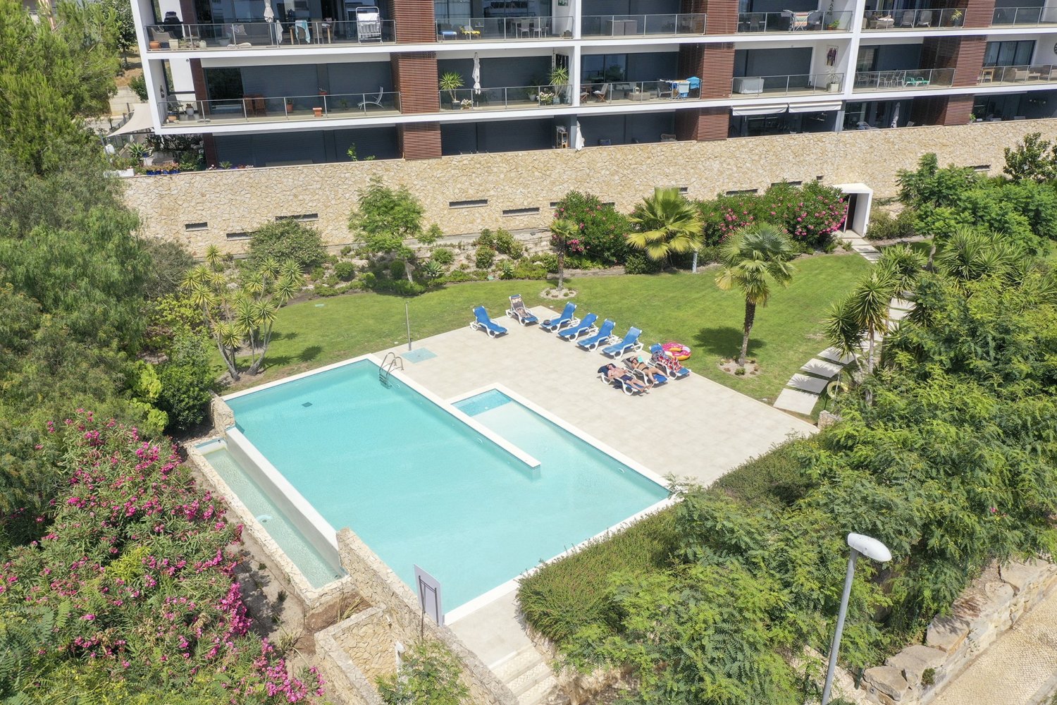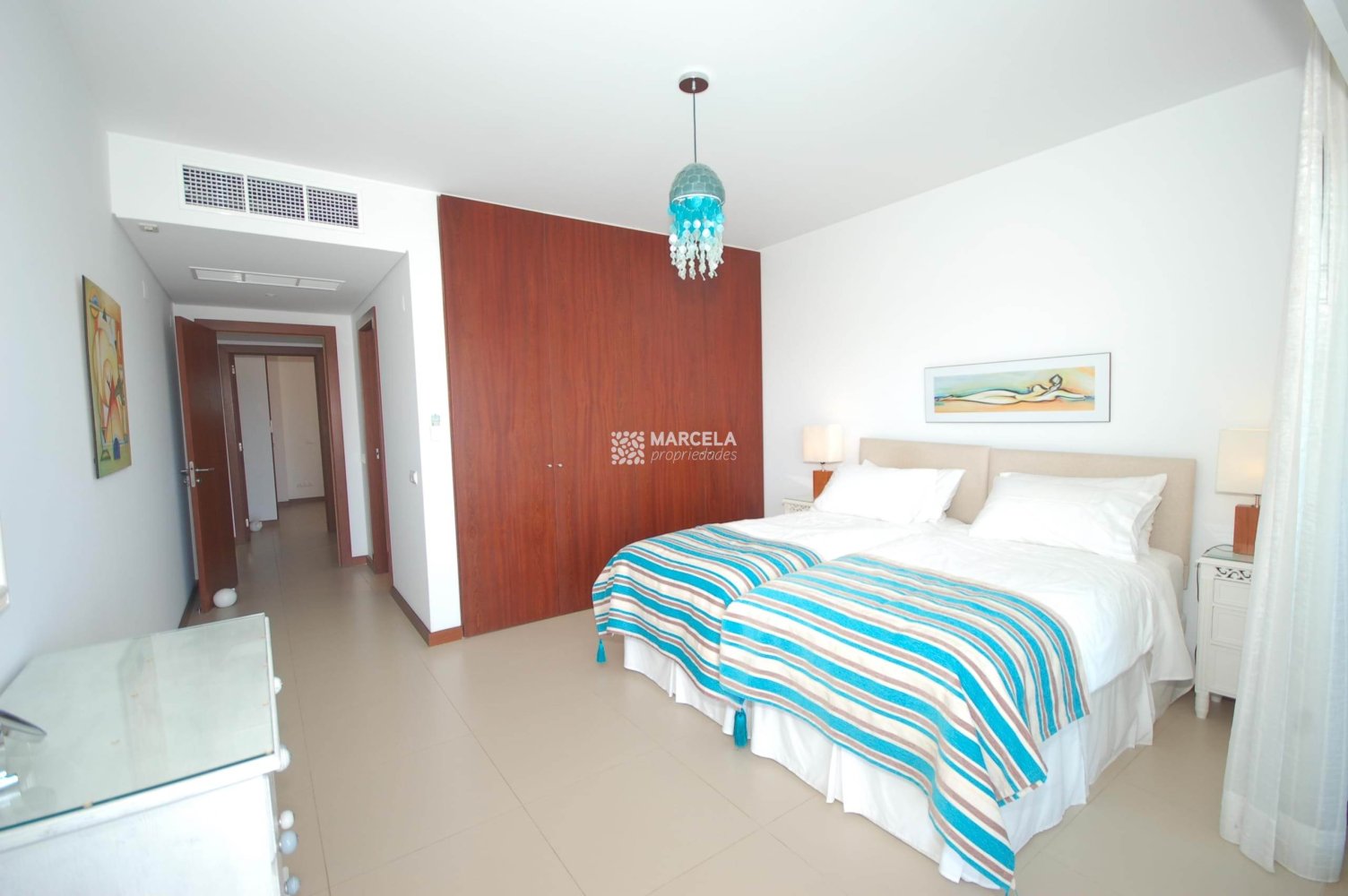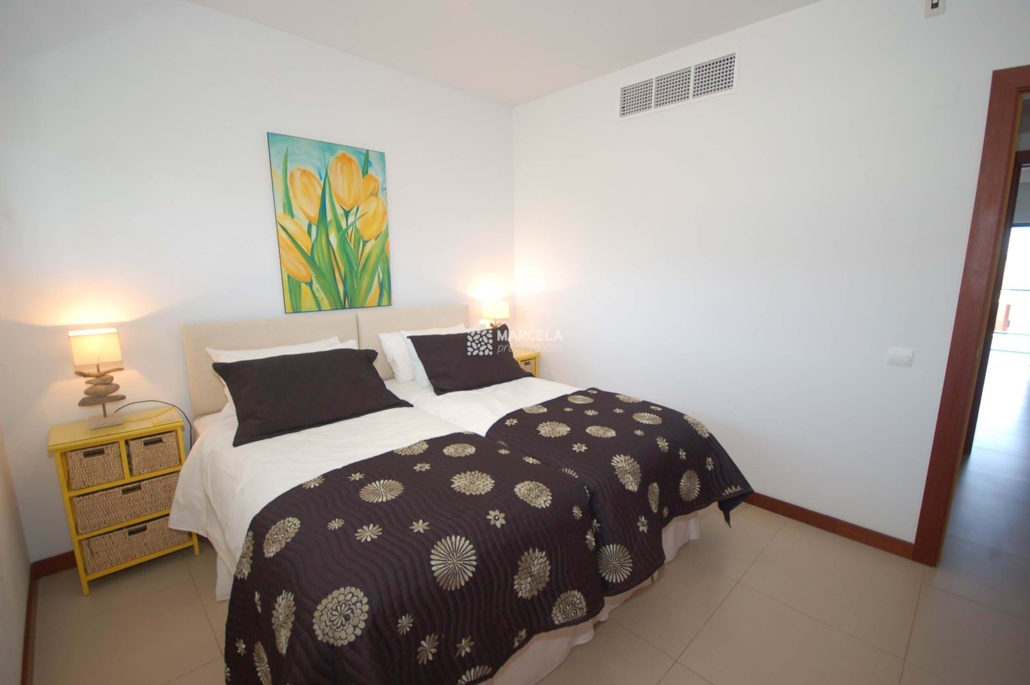 Das modern ausgestattete Apartment verfügt über eine voll ausgestattete Küche mit hochwertigen Küchengeräten ( Induktionsherd, Filter-und Espresso-Kaffeemaschine), 2 Schlafzimmer (ein Zimmer mit Zugang zur Terrasse), 1 Büro mit Schlafcouch ( ebenfalls Zugang zu einem kleinen seitlichen Balkon )und 2 Badezimmer (1 en-suite). Auf der weitläufigen, den ganzen Tag sonnigen Terrasse befindet sich ein großer Tisch, Stühle und Sonnenliegen. Klimaanlage, WLAN, elektrische Handtuchhalter in den Badezimmern, Sonnenkollektoren für die Warmwasserbereitung und elektrische Jalousien runden das Angebot ab. Diese Wohnung hat die Besonderheit, nach Südwesten ausgerichtet zu sein und bietet eine wunderschöne 360º-Aussicht. Zur Wohnung gehören zwei private Parkplätze in der Tiefgarage, mit dem Aufzug gelangen Sie von der Parkebene direkt in die Etage der Wohnung. Der Zugang zum Pool erfolgt über eine Tür in der Garage. Der sehr gut sortierte Supermakrt Pingo Doce ist fußläufig erreichbar, ein kleiner Minimarkt, in dem z.B.Brötchen gekauft werden können, ist unmittelbar an der Anlage.